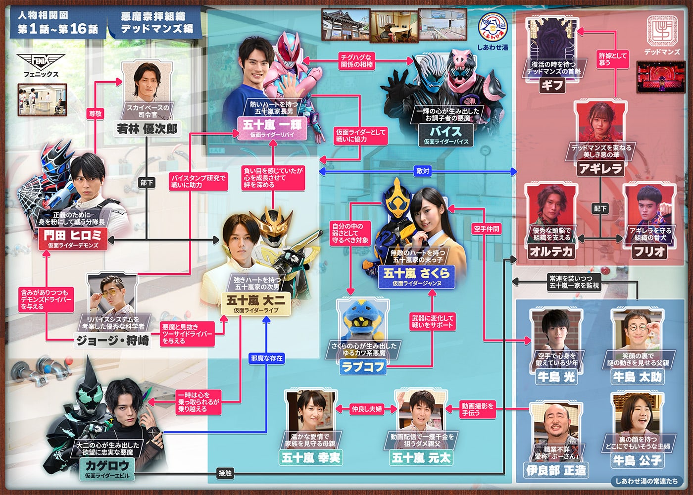 そして、一輝はバイスとともに「しあわせ湯」を出る決断を下すが、実は唯一、一輝が記憶を取り戻す方法が存在していた。それは、もう一度戦うことで最後に残った家族であるバイスの記憶を消し、契約を完了させること。一輝を想うバイスの、一世一代の大芝居が始まろうとしている……。